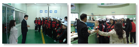 結(jié)束對(duì)本部辦公大樓的訪問(wèn)和午餐后,訪問(wèn)團(tuán)一行經(jīng)大田中部地域最大的美健世界科技城后,抵達(dá)位于忠南燕岐郡的生產(chǎn)工廠,獲得了零距離體驗(yàn)和參觀美健產(chǎn)品的生產(chǎn)和質(zhì)檢過(guò)程的寶貴時(shí)間和經(jīng)驗(yàn)。
