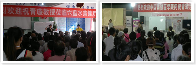 貴陽美健體驗(yàn)廳,顧客夾道歡迎祝教授一行人。祝教授把美健治根治本—美健與脊柱的課程送給了顧客。顧客們用熱烈的掌聲表示感謝。巡講之后,安排了專家坐答。顧客們排隊進(jìn)行咨詢,體現(xiàn)了百姓對健康的重視。