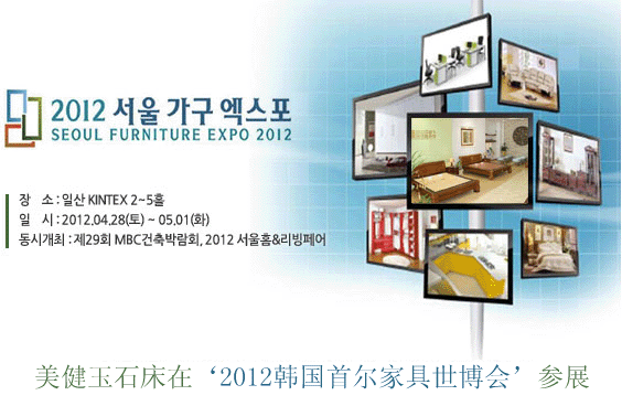 2012年4月28日至5月1日4天期間,在韓國日山國際展覽中心隆重舉辦了“2012首爾家具世博會(huì)”(株)美健醫(yī)療器的‘美健玉石床’在本次展會(huì)上參展。