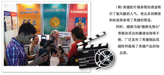 2012年4月4日到7日,(株)美健醫(yī)療器在越南河內(nèi)參加了Vietnam Exhibition & Fair 展覽中心舉辦的世界一流韓國產(chǎn)品展覽會。
