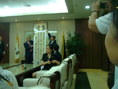 在大田總部的接見(jiàn)大廳,李相福會(huì)長(zhǎng)對(duì)訪問(wèn)團(tuán)表示熱烈的歡迎。他特別感謝中國(guó)優(yōu)秀美健事業(yè)者和優(yōu)秀美健顧客對(duì)中國(guó)美健做出的巨大貢獻(xiàn)。在觀看了美健宣傳影像后,全體訪問(wèn)者受到了極大的鼓舞和教育。中午,訪問(wèn)團(tuán)與李相福會(huì)長(zhǎng)共進(jìn)豐盛的午餐。